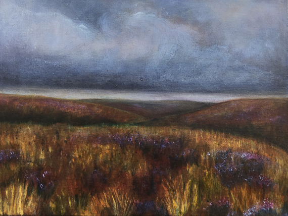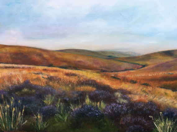 Her botanical work is in watercolour. Her landscapes are oil on canvas of the Lammermuirs, one of which received the Torness Cup for best painting in the Berwickshire Art Society Show in Duns Castle 2021.